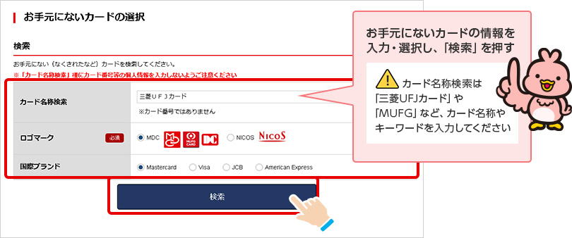 STEP 1.盗難・紛失カードを検索する