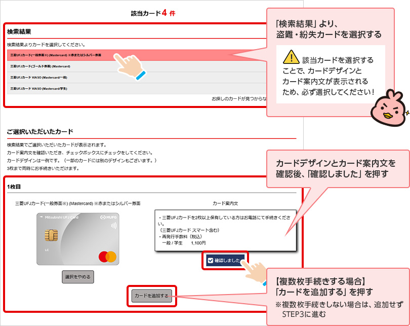 STEP 2.盗難・紛失カードを選択する