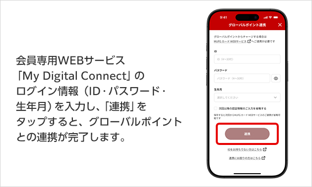 三菱UFJニコス指定のクレジットカード・デビットカード(※1) 銀行口座(※2) グローバルポイント(※3) ギフトコード |
