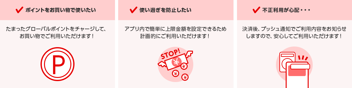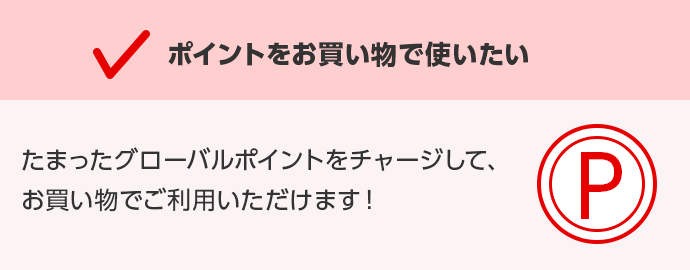 たまったグローバルポイントはグローバルポイント Walletに1P=5円でチャージすることで、お買い物にご利用いただけます。