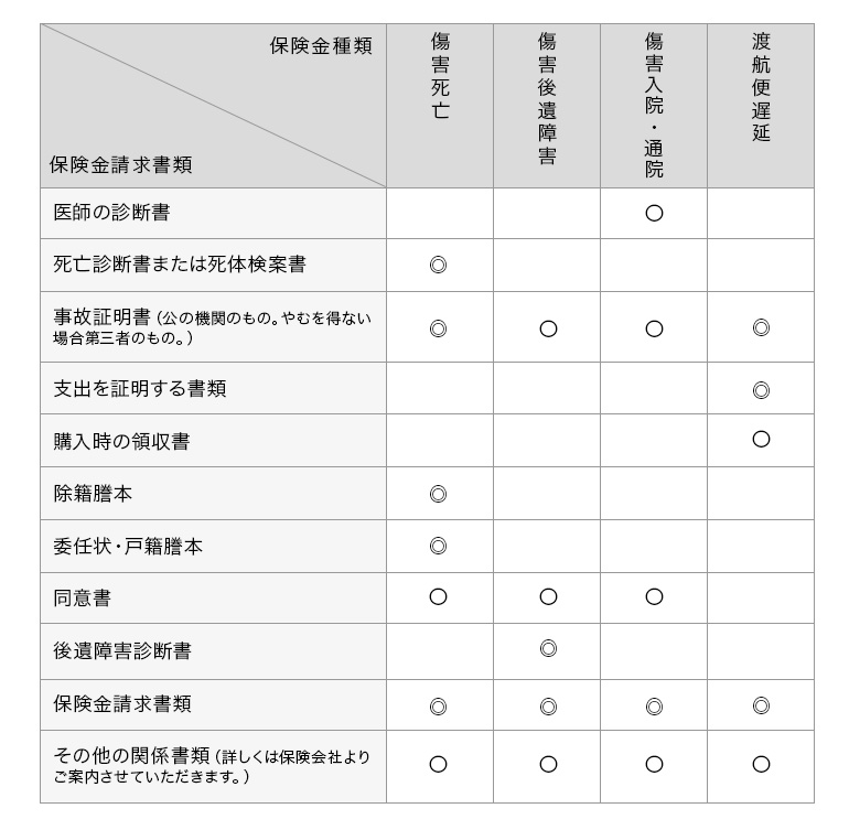 - ◎印は原則として必要な書類、○印は場合によっては必要になる書類です。