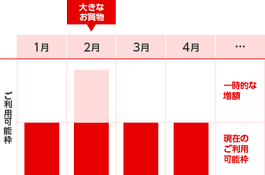 長期的にカードのご利用が増える場合は、カードのショッピングご利用可能枠を継続的に増額することができます。