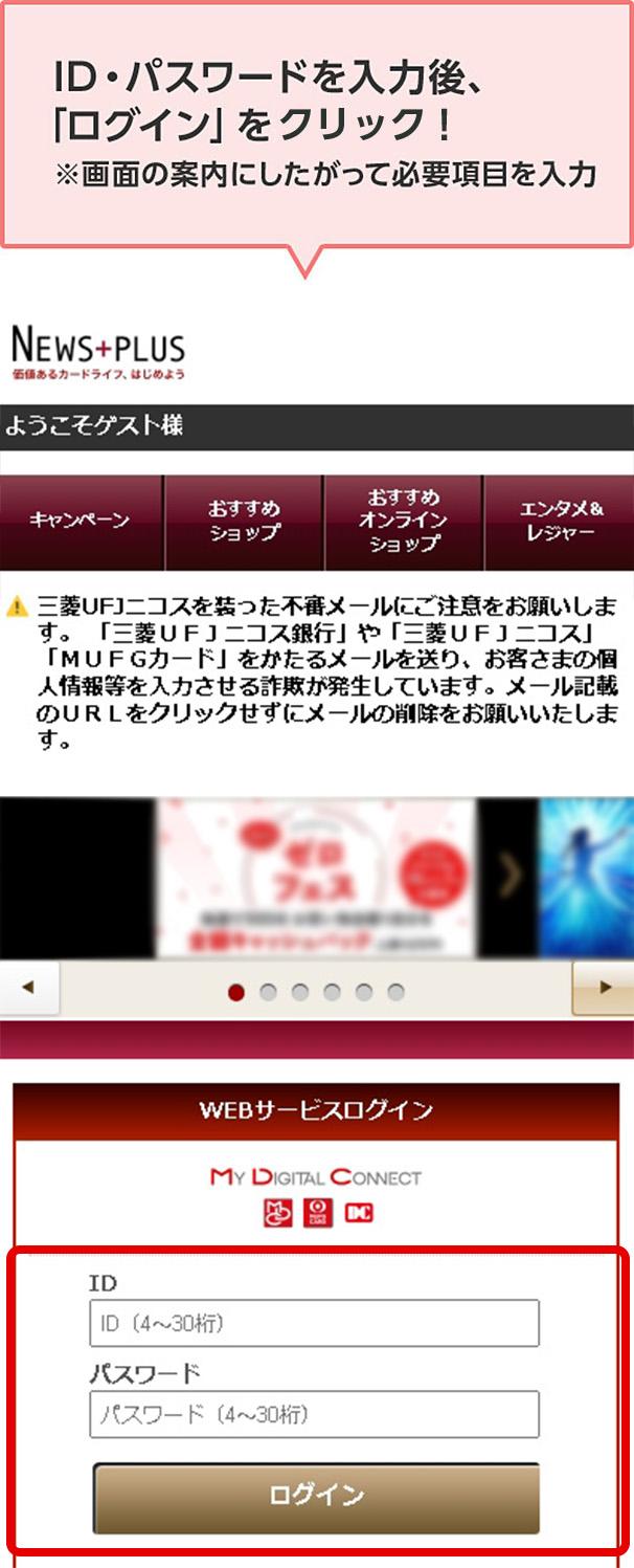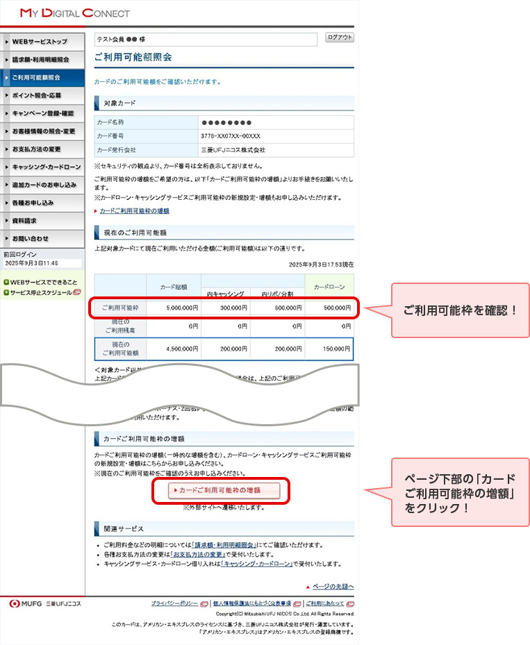 - 会員専用WEBサービス「My Digital Connect」にログインし、現在のご利用可能枠、ご利用可能額をご確認ください。