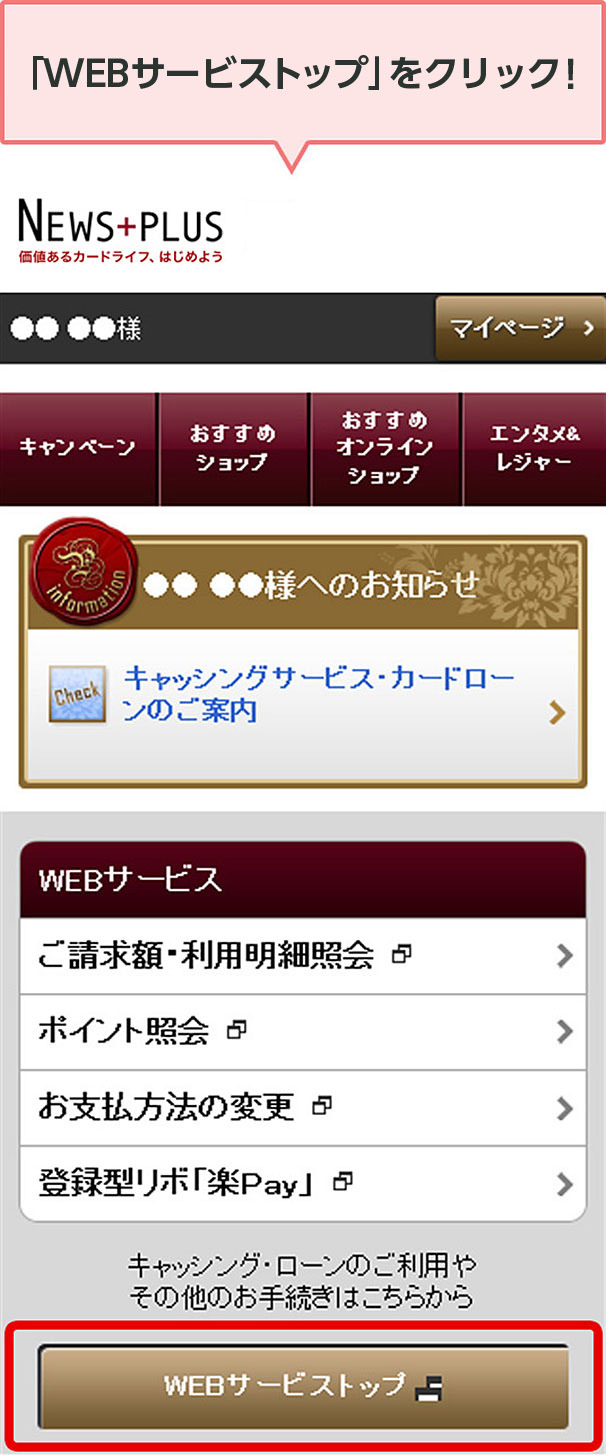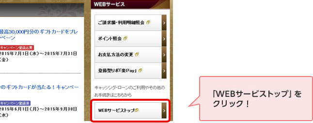 STEP 2. ログイン後、WEBサービスメニューの「WEBサービストップ」を押す