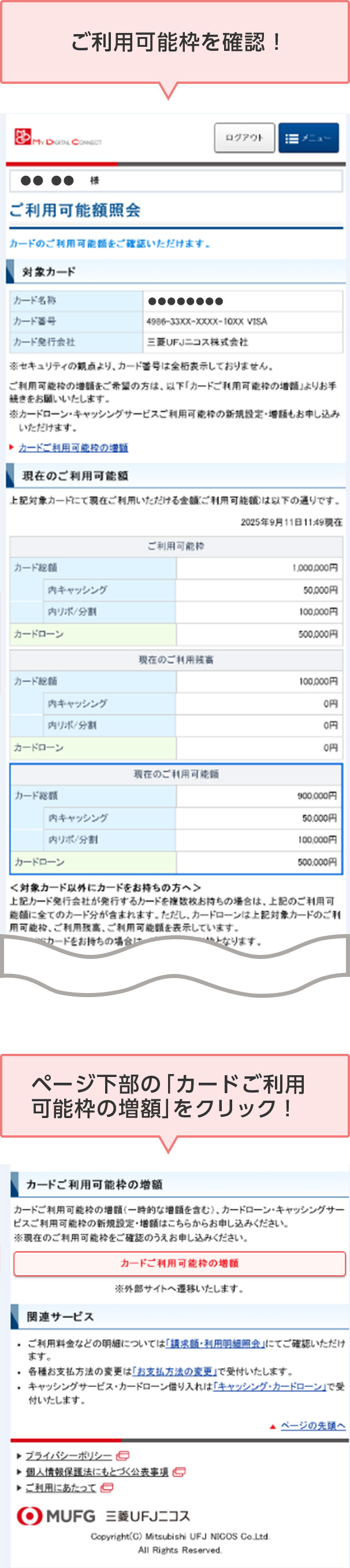 STEP 3. カードご利用可能枠の増額をクリック
