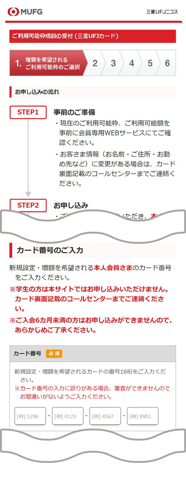 - 分割払いやリボ払いのご利用可能枠を増額されたい場合