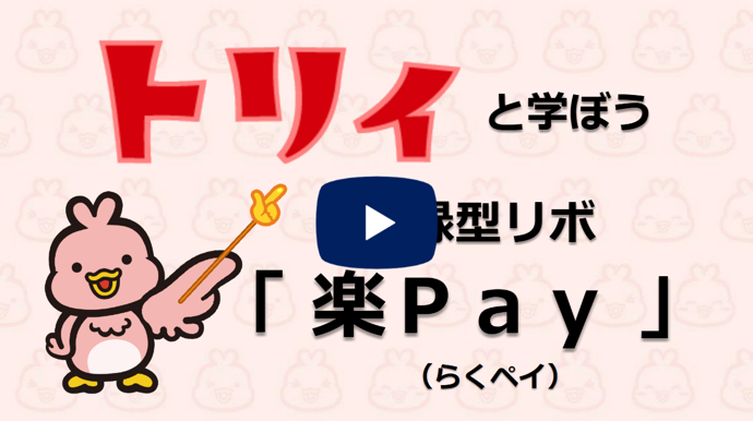 動画で、登録型リボ「楽Pay」の説明をしています。