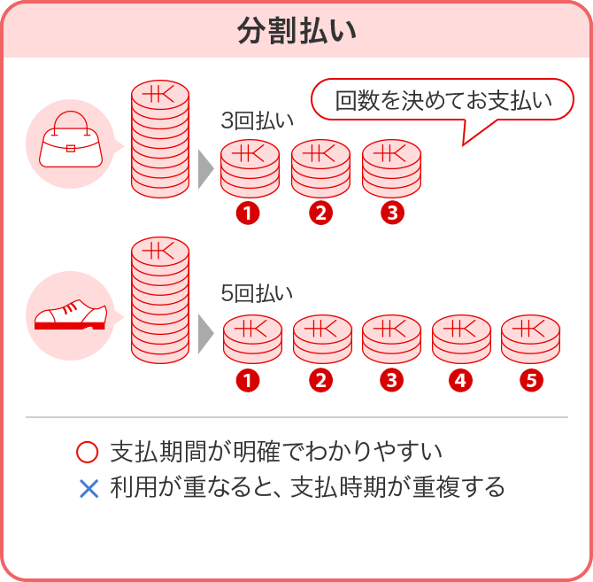 お支払金額を調整するお支払い方法には、「リボ払い」の他に「分割払い」があります。