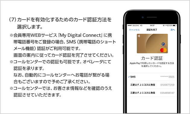 - 設定の際、コールセンターへお電話が繋がり、オペレータにて認証を承ることがございます。