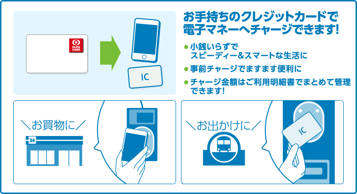 お手持ちのクレジットカードで電子マネーへチャージできます!