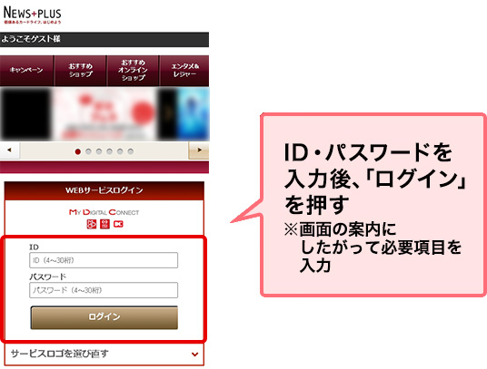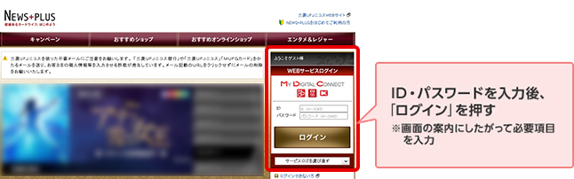 ID・パスワードを入力後、「ログイン」を押す ※画面の案内にしたがって必要項目を入力