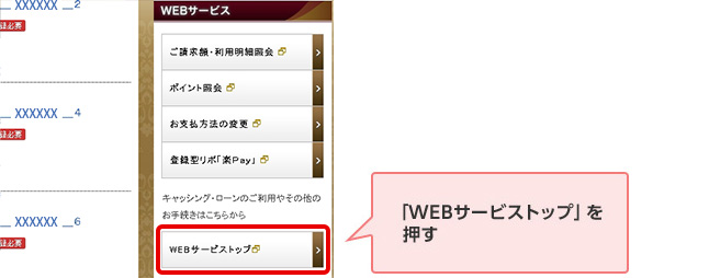 STEP 2. ログイン後、WEBサービスメニューの「WEBサービストップ」を押す