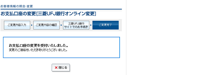 • ※WEBサービスでのお手続きは、三菱UFJ銀行(普通預金口座)へのご変更のみ承ります。その他の金融機関へのご変更の場合、お客さま情報変更届にてお手続きください。