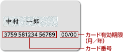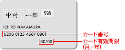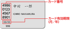 「カード番号」「カードの有効期限」の記載位置は、以下をご確認ください。