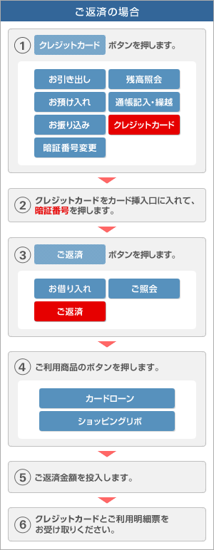 全国の金融機関およびコンビニエンスストアのATMより、手数料無料でリボ払いご利用残高の一部をお支払いいただけます。ATMでのご入金は1千円単位で元金のみのお支払いとなります。お支払い前に弊社へ事前にご連絡いただく必要はございません。
