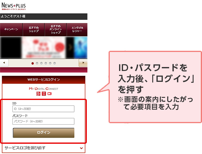 - 会員専用WEBサービス「My Digital Connect」にログインのうえ、お申し込みください。ご利用にはID・パスワードが必要です。