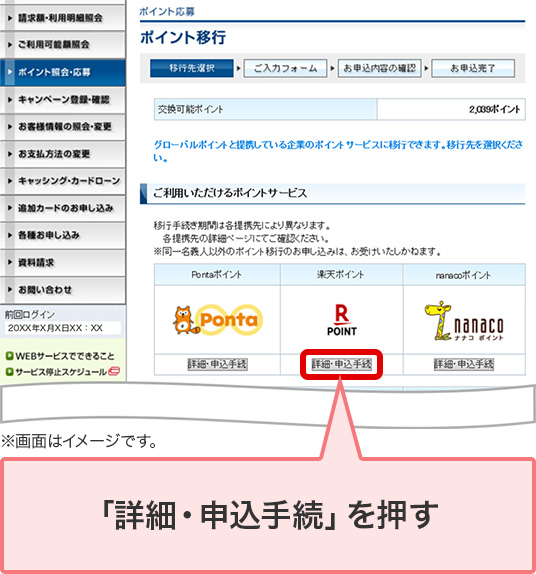 STEP 5. ご希望のポイント移行先の「詳細・申込手続」を押す
