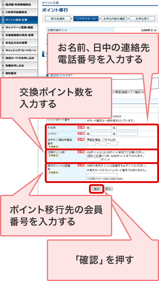 - [ポイント移行の場合]ご本人さま名義の移行先番号(ID)