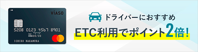 クレジットカードに紐づいたETCカードを利用すれば、有料道路などの利用料金がクレジットカードのポイントにつながるためお得です。三菱UFJニコスの「VIASOカード」であれば、追加発行のETCカードを利用すると、クレジットカードのポイントが2倍になります