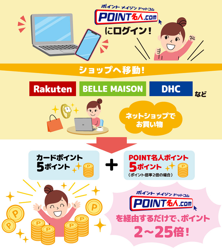 - POINT名人.comを利用すると、ボーナスポイントもたまる