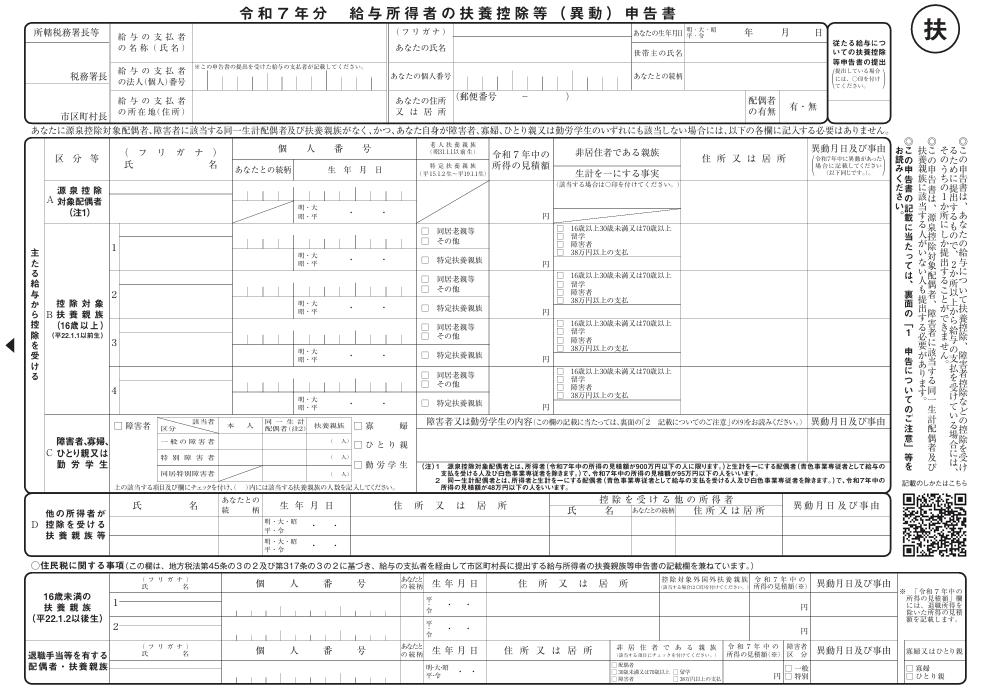 ■ 令和7年分 給与所得者の扶養控除等(異動)申告書