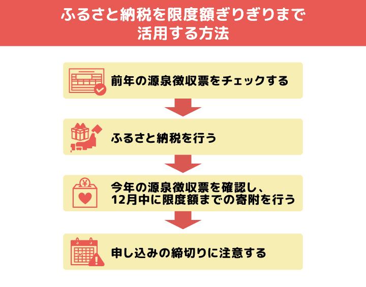 ふるさと納税のメリットを最大限に活かすために、限度額ぎりぎりまで使い切るにはどのような方法をとれば良いのでしょうか?