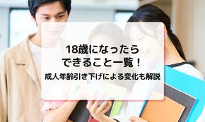 18歳になったらできること一覧!成人年齢引き下げによる変化も解説2024年3月25日民法改正により成人年齢が引き下げられ、18歳になったらできることと、20歳になったらできることが変わりました。18歳でできることと注意点を解説します。 -