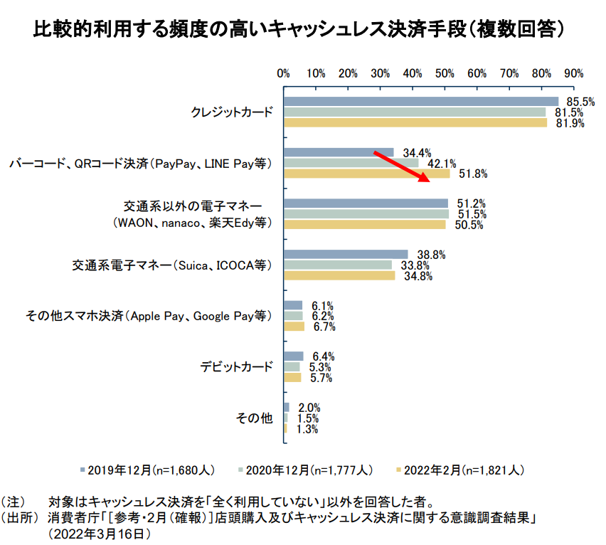 三菱UFJリサーチ&コンサルティング「キャッシュレス決済の動向整理」(2022年9月)