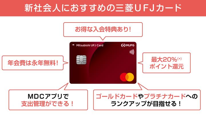 新社会人が新しくクレジットカードを作るなら、三菱UFJカードがおすすめです。三菱UFJカードには、新社会人にうれしいさまざまなメリットがあります。