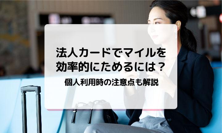 詳しくは「法人カードでマイルをためる方法」をご確認ください。 - 法人カードのマイルは個人利用できる?