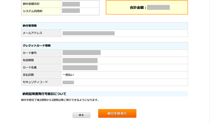 なお、クレジットカード納付の場合、システム利用料がかかります。また、領収証は発行されませんが、お住まいの自治体に申請すれば納税証明書は発行できます。