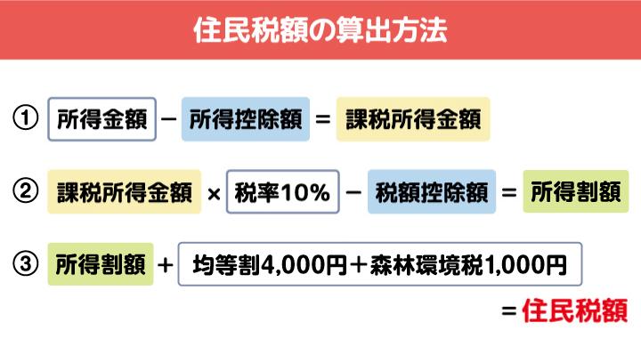 2で出した所得割額から均等割の4,000円と森林環境税の1,000円を足した金額が住民税額になります。