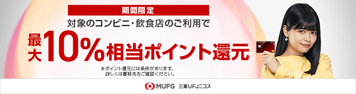 また、セブン‐イレブンやオーケーなどの対象店舗(*1)で三菱UFJカードを利用すると、ご利用分の最大20%(*2)相当のポイントが還元されます。