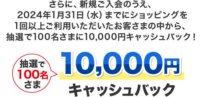 - ・当選された場合、キャッシュバック金額は2024年3月末頃にカードご利用代金のお引落口座にお振り込みいたします(事務手続きの都合等によりキャッシュバック時期が遅くなる場合がございます)。