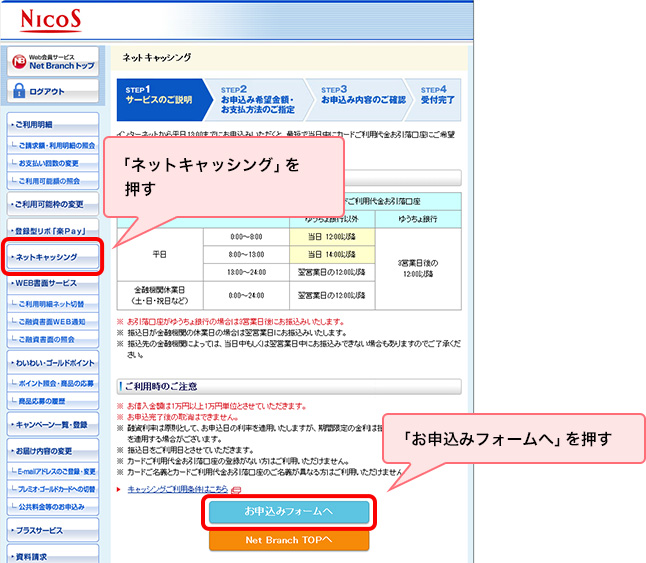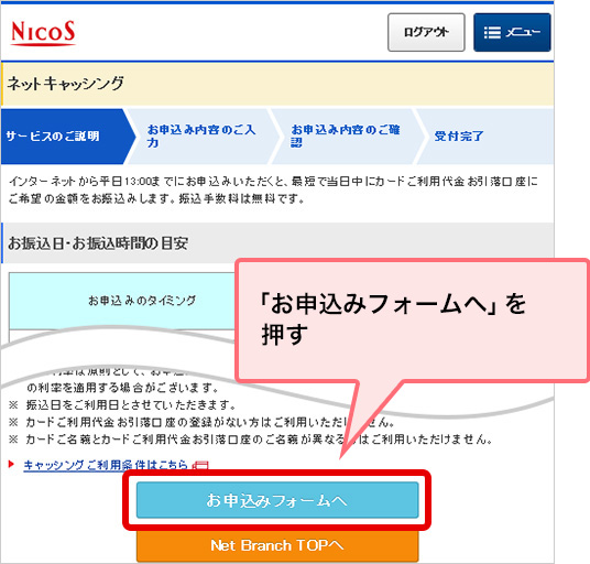STEP 2.Web会員サービス「Net Branch」に遷移し、お借り入れのお申し込み