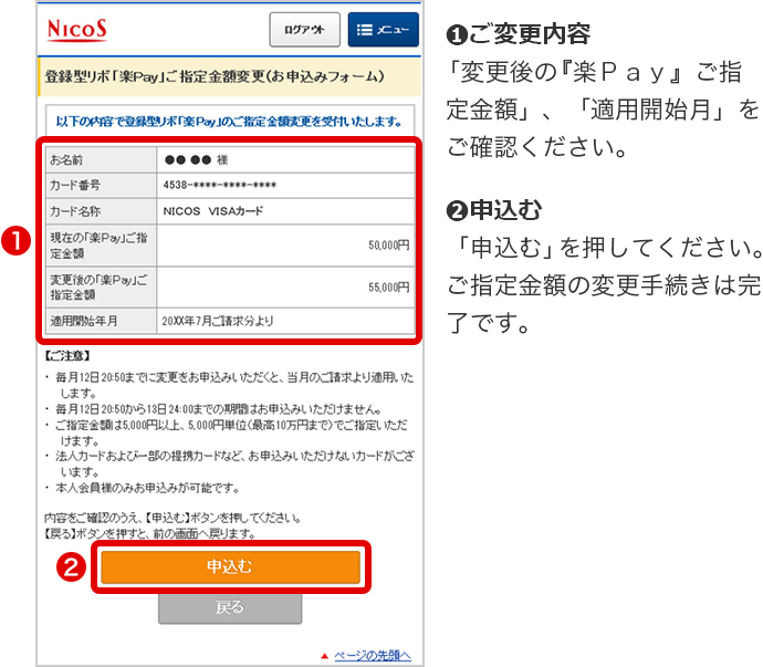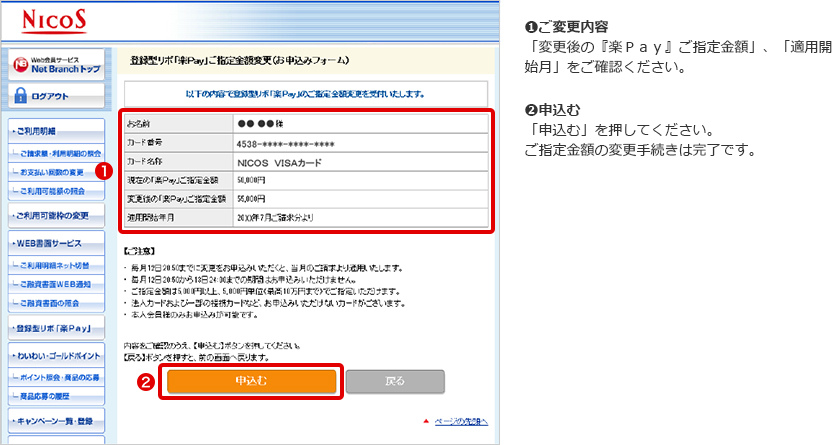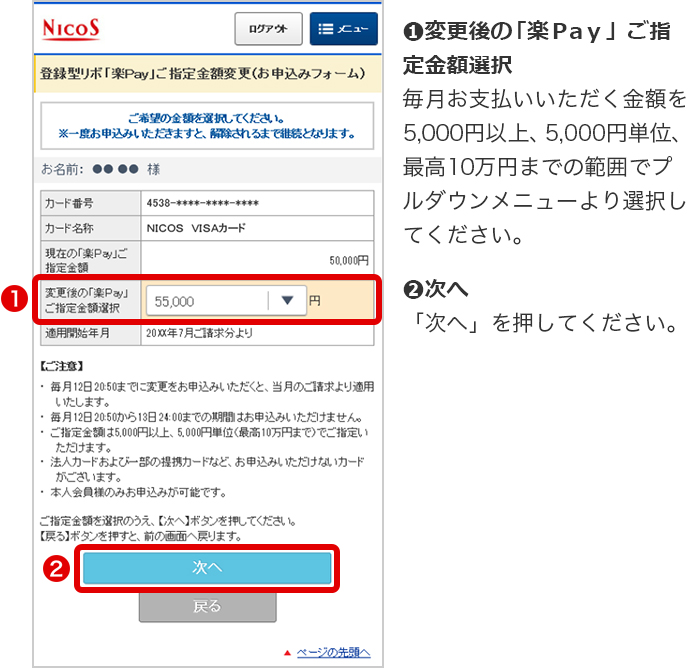 登録型リボ「楽Pay(らくペイ)」の登録・指定金額の変更・解除のお手続き方法をご案内いたします。以下をご確認のうえ、お手続きください。
