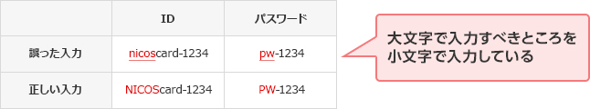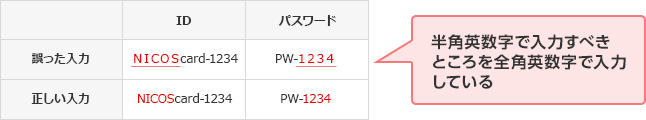 ID・パスワードに使用している英数字は半角でご入力いただく必要がございます。半角・全角をお間違いないようにご入力ください。