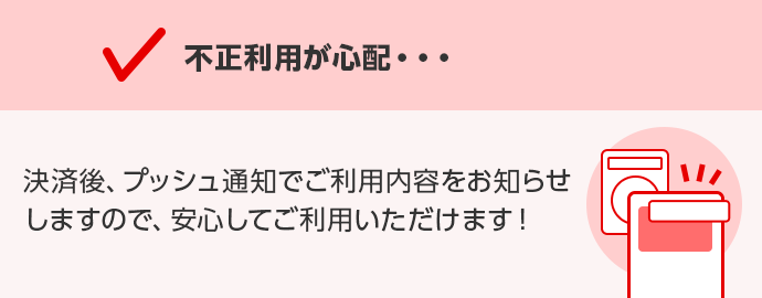 利用金額上限の設定をアプリから簡単に設定・変更が可能です。また、決済時のプッシュ通知機能もあり、安心・安全にご利用いただけます。