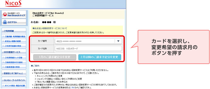 STEP 3. カードを選択し、変更希望の請求月のボタンを押す