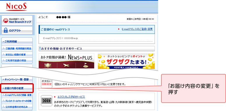 STEP 3. メニューの「お届け内容の変更」を押す