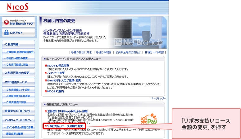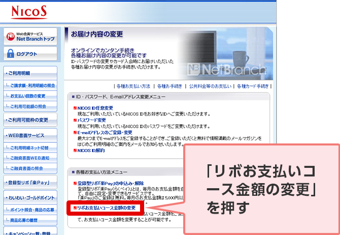 STEP 4. 「リボお支払いコース金額の変更」を押す