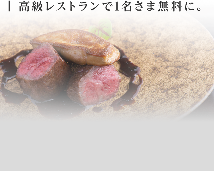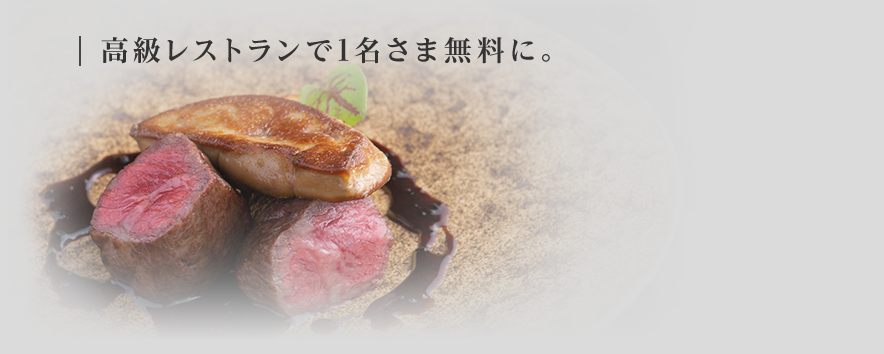 国内の厳選されたレストラン約150店で受けられるグルメ優待サービスです。レストランの所定コースメニューを大人2名さま以上でご利用いただくと、1名さま分のコース料理を無料にてご提供いたします。