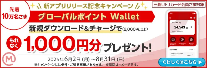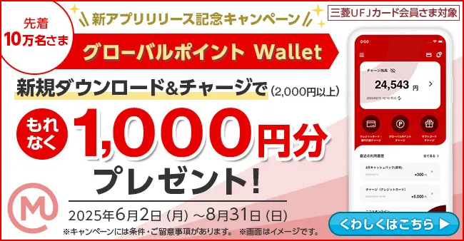 「グローバルポイント Wallet」アプリにチャージ