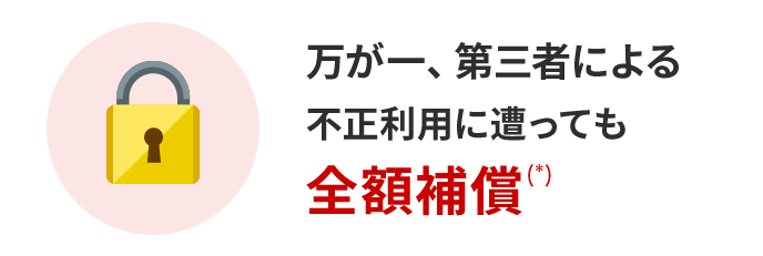 万が一、不正利用の被害に遭われた場合はこちらよりお問い合わせください。不正利用が認められた場合、全額をすみやかに補償いたしますのでご安心ください。