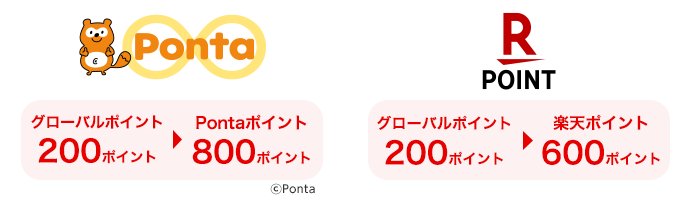 - グローバルポイントの交換レートは商品ごとに異なります。